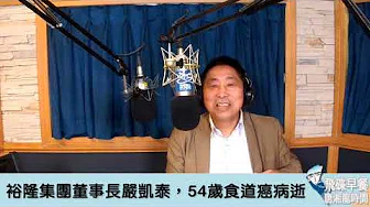 主持人:唐湘龍 節目時間:週一至週五 08:00 - 09:00 ◎節目內容大綱: ● 「飛碟早餐 唐湘龍時間」,網路直播 00'30 ● 裕隆集團董事長嚴凱泰,54歲食道癌病逝 10'03...