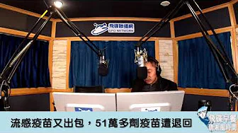 主持人:唐湘龍 節目時間:週一至週五 08:00 - 09:00 ◎節目內容: 第一段: ●「飛碟早餐 唐湘龍時間」,網路直播 00'30 ● 流感疫苗又出包,51萬多劑疫苗遭退回 09'06...